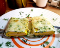 Особенно он понравится тем, кто любит радовать семью вкусными и оригинальными завтраками, но при этом хочет тратить минимум времени на готовку. В качестве начинки для такого омлета можно использовать плавленный сырок, твёрдый сыр, брынзу, а также ветчину, колбасу или любые колбасные изделия - всё зависит от ваших предпочтений.