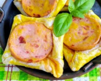 Это блюдо готовится из покупного бездрожжевого слоёного теста очень быстро и просто. Для начинки можно использовать варёную или полукопченую колбасу и твёрдый сыр или плавленные сырки.