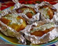 В качестве начинки можно приготовить самые разные соусы, например, грибной, зеленый, сметанный, чесночный, сырный и т.д. и каждый раз вкус картофеля будет новым и необычным. ... Картошку, запеченную в духовке, подаём к столу прямо в фольге. Начинка из сметаны и чеснока делает картофель ароматным и особенно вкусным.