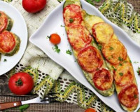 Я использовала длинный кабачок среднего размера, у меня осталось немного начинки и я решила выложить её на кружочки кабачка. Если взять кабачок размером чуть больше среднего, тогда вся начинка прекрасно уместится в лодочках. ... Начинить лодочки из кабачка начинкой из фарша и риса. У меня немного начинки осталось, я взяла половину небольшого кабачка, нарезала его на кружочки толщиной 1 сантиметр, а затем разложила начинку поверх кружочков из кабачка.