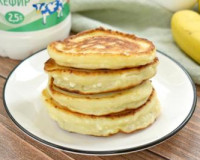 Оладушки - идеальное блюдо для завтрака или перекуса в течение дня. Предлагаю вам свой любимый рецепт приготовления на сковороде пышных, аппетитных оладий из творога и кефира. ... Для приготовления пышных оладий из творога и кефира на сковороде потребуется: яйцо - 1 шт.; кефир - 100 мл; творог - 150 г; пшеничная мука - 100 г; сода - 0,25 ч. л.; сахар - 1,5 ст. л.