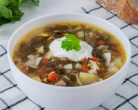 Сегодня будем готовить зелёный борщ со щавелем, куриным мясом и яйцами. Щавель придаёт борщу неповторимую кислинку и помогает восполнить запас витаминов в организме, а яйца дают дополнительную сытость. ... В отдельной ёмкости сварите яйца вкрутую (варим 9-10 минут с момента закипания воды). Остудите их, почистите, нарежьте на небольшие кубики.
