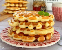 Предлагаю приготовить в электрической вафельнице пышные, мягкие, аппетитные вафли. Тесто для этих вафель замешивается на ряженке за считанные минуты обычным венчиком. ... Ряженку можно купить любой жирности (я купила жирностью 4%). В миске соединить яйца и сахар. В миске соединить яйца и сахар. Смесь яиц и сахара перемешать венчиком до однородности (ориентировочно в течение 2 минут).