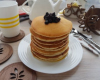 Но всё-таки решилась. Панкейки, замешанные на кефире, получились вкусными, пышными, нежными, тающими во рту. Они настолько понравились всем членам семьи, что теперь готовлю только так. ... Для приготовления панкейков на кефире на сухой сковороде вам потребуется: кефир жирностью не менее 2,5% - 220 мл; яйцо - 1 шт.; сахар - 3 ст. л.; сода - 1/2 ч. л.; разрыхлитель теста - 1 ч. л.; соль - 1 щепотка; мука высшего сорта - 200 мл; подсолнечное масло - 4 ст. л.