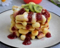 Затем остужаем, чтобы можно было ввести яйца. В кипящее молоко тонкой струйкой вводим манку. Варим манную кашу, помешивая, 3-5 минут. ... Взбиваем белки с солью до пышной пены, добавляем ванилин и аккуратно лопаточкой перемешиваем с кашей.