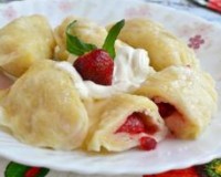 Для приготовления вареников с клубникой на кефире потребуется: кефир любой жирности - 250 мл; яйцо куриное - 1 шт.; соль - щепотка; сода - 1/4 ч. л.; мука высшего сорта - 3 стакана; сахар - 5-6 ст. л.; клубника - 200 г; сметана для подачи. ... Затем в кефир всыпать щепотку соли и вбить яйцо, хорошенько перемешать. Затем в кефир всыпать щепотку соли и вбить яйцо, хорошенько перемешать.