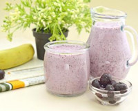 Для приготовления смузи с голубикой и бананом потребуется: кефир - 200 мл; голубика - 100 г; банан (средний) - 1 шт.; мёд (или сахар) - по вкусу (по желанию). ... В получившееся фруктово-ягодное пюре вливаем кефир. В получившееся фруктово-ягодное пюре вливаем кефир. Снова взбиваем до однородности.