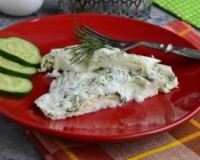 Добавить сметану и измельченный укроп, еще раз взбить. Смесь получается пышной и однородной. Смесь получается пышной и однородной. Миску, предназначенную для готовки в СВЧ, поместить в микроволновку.