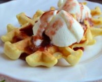 Обычно вафли из теста, замешанного на молоке, не получаются хрустящими, но в этом рецепте в тесто добавлен еще и коньяк, поэтому вафельки получаются и пышными, и хрустящими снаружи. Подать молочные вафли можно с шариком мороженого и любым джемом. ... Стакан емкостью 250 мл. К сырым яйцам добавить сахар, соль и ванилин. К сырым яйцам добавить сахар, соль и ванилин.