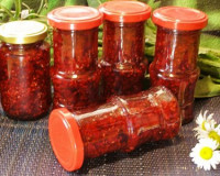 Лучше всего взять небольшие баночки объёмом, примерно, 200-250 мл. Тщательно моем банки с содой, затем стерилизуем их любым удобным для вас способом. Например, можно налить немного кипящей воды в каждую банку (заполнить кипятком на 2 сантиметра выше уровня дна банки) и сразу поставить банки в микроволновку на максимальную мощность (у меня - 800 Ватт) на 60-120 секунд. ... Лучше всего взять…