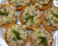 Картошку отварить в кожуре до готовности (на варку потребуется минут 20-25 после закипания воды). Яйца отварить в течение 10 минут с момента начала кипения воды. Сваренные яйца и картофель полностью остудить, непосредственно перед приготовлением салата очистить. ... Картошку нарезать на мелкие кубики. Яйца нарезать на мелкие кубики. Яйца нарезать на мелкие кубики. Копчёную курицу разобрать на волокна (или нарезать на небольшие кубики).