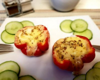 Затем аккуратно вбить в каждую половинку перца по сырому яйцу. Далее яйца посолить по вкусу. Затем аккуратно вбить в каждую половинку перца по сырому яйцу. Далее яйца посолить по вкусу. Тарелку с перцами поставить в микроволновку и готовить при мощности 800 Вт 2,5 минуты.
