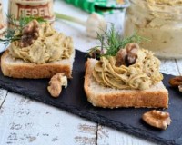 Обжарить лук, помешивая, на среднем огне до легкой золотистости, остудить. Яйца очистить, нарезать на части и поместить в чашу блендера. Яйца очистить, нарезать на части и поместить в чашу блендера. К яйцам в чашу блендера выложить обжаренный лук, очищенный чеснок и грецкие орехи.