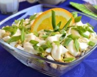 Лук и вареные яйца очистить. Крабовые палочки нарезать кружками и разместить в салатнике первым слоем, смазать майонезом. ... Следующим слоем выложить рубленные вареные яйца, которые чуть посолить и смазать майонезом. Следующим слоем выложить рубленные вареные яйца, которые чуть посолить и смазать майонезом.