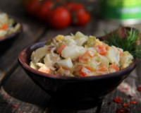 Предварительно нужно отварить картошку в кожуре, морковку, курицу и яйца. Куриное мясо без кости варится в кипящей подсоленной воде 30-35 минут, картофель - 25-30 минут, морковь - минут 20, яйца - 8-10 минут. ... Предварительно нужно отварить морковку и картошку в кожуре, курицу и яйца. Куриное мясо без кости варится в кипящей подсоленной воде 30-35 минут, картофель - 25-30 минут, морковь - минут 20, яйца - 8-10 минут.