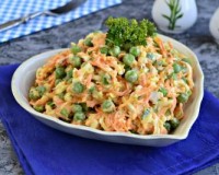 Морковь очистить и натереть на средней терке, добавить натертое на крупной терке вареное яйцо. Яйцо сварить (в течение минут 10 с момента закипания), затем остудить и очистить. Морковь очистить и натереть на средней терке, добавить натертое на крупной терке вареное яйцо. Очищенный лук нарезать тонкими четвертинами и вместе с горошком добавить в салат из моркови и яиц.