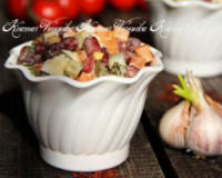 Для приготовления салата с красной консервированной фасолью и солёными огурцами потребуется: красная фасоль консервированная - 1 банка; морковь (средняя) - 1 шт.; яйцо - 2 шт.; солёные огурцы - 2-3 шт.; укроп - 1 пучок; соль - по вкусу; майонез для заправки. ... Сварить вкрутую яйца (на варку потребуется минут 10 с момента начала кипения воды), а затем остудить их, почистить, нарезать на кубики и выложить в миску с варёной морковкой.