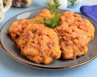 На мясорубке (или в блендере) измельчить очищенные лук, морковь и картофель, добавить овощи к мясу. Сюда же вбить сырое яйцо. На мясорубке (или в блендере) измельчить очищенные лук, морковь и картофель, добавить овощи к мясу. Сюда же вбить сырое яйцо. Рубленный фарш с овощами посолить, всыпать приправу и чёрный молотый перец.