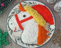 Сюда же выложить вымытый и мелко нарезанный зелёный лук. Остывшие яйца очистить. Разделить яйца на белки и желтки. 2 желтка и все белки отложить для украшения салата в виде лошади. ... Очень много майонеза не добавляйте, салат должен быть хорошо пропитан, но при этом "водянистым" он быть не должен. Остывшие яйца очистить. Разделить яйца на белки и желтки. 2 желтка и все белки отложить для украшения салата в виде лошади.