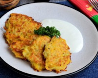 Для приготовления драников с тыквой и картошкой потребуется: 100 г картофеля; 100 г мякоти тыквы; 1 куриное яйцо; 1 луковица; 1 зубчик чеснока; соль, чёрный молотый перец - по вкусу; 2 ст. л. муки в/с; растительное масло для жарки. 100 грамм картофеля и 100 грамм тыквы, очищенной от семечек и кожуры, натереть на средней тёрке. 100 грамм картофеля и 100 грамм тыквы, очищенной от семечек и кожуры,…