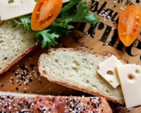 Для приготовления творожного хлеба без дрожжей в духовке потребуется: кефир - 200 мл; творог - 150 г; яйцо - 1 шт.; мука - 400 г; соль - 1 ч. л.; сахар - 1 ч. л.; сода - 1 ч. л.; семена кунжута - 1 ст. л. ... После того как сода погасится в кефире, добавить творог. После того как сода погасится в кефире, добавить творог.