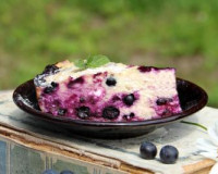 Для приготовления творожной запеканки с черникой в духовке потребуется: творог любой жирности (у меня - жирностью 9%) - 400 г; черника - 200 г; яйцо - 2 шт.; сахар - 3 ст. л.; манка - 2 ст. л.; растительное масло для смазывания формы. ... Свежую чернику нужно будет перебрать, убирая листочки, затем промыть её водой и обсушить, выложив на бумажное полотенце. В миске соединить творог, яйца, манку и сахар. В миске соединить творог, яйца, манку и сахар. Пробить творожную массу погружным блендером до однородности.