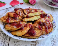 ... 2 яйца; 150 г сахара; 0,5 ч. л. соли; на кончике ч. л. ванилин; 2,5 стакана муки; 200 мл кефира; 50 г сливочного масла; 0,5 ч. л. соды; сахарная пудра для подачи - по желанию.