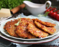 Для приготовления картофельных драников с ветчиной и сыром потребуется: картофель очищенный - 700 г; ветчина - 200 г; лук - 1 шт.; сыр твёрдых сортов - 100 г; яйцо - 3 шт.; мука - 80 г; зелень (у меня - укроп) - пара веточек; соль - по вкусу; растительное масло для жарки. ... В миску с картошкой, ветчиной и сыром добавить сырые яйца, подсолить, учитывая солёность ветчины и сыра, и перемешать. В миску с картошкой, ветчиной и сыром добавить сырые яйца, подсолить, учитывая солёность ветчины и сыра, и перемешать.