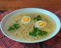 За это время спокойно можно приготовить домашнюю лапшу, для этого необходимо в одну миску разбить яйцо, а в другую - просеять муку. Яйцо посолить и постепенно, небольшими порциями, добавлять к нему муку, перемешивая массу вилкой. Яйцо посолить и постепенно, небольшими порциями, добавлять к нему муку, перемешивая массу вилкой.