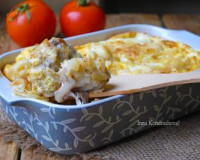 .; соль, чёрный молотый перец - по вкусу; яйцо - 1 шт.; мука - 1 ч. л. Заранее достаём слоёное тесто из морозилки и оставляем его размораживаться при комнатной температуре. ... Накрываем начинку второй стороной пласта, плотно скрепляем края, а в центре оформляем отверстие для выхода пара. Взбиваем слегка яйцо, а затем получившейся яичной смесью смазываем поверхность слоёного пирога.