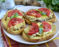 Аккуратно снять с обжаренных баклажанов кожицу. Яйца разбить в тарелку, слегка их взбить вилкой с небольшим количеством соли. В получившуюся яичную массу обмакнуть с двух сторон ломти батона (или хлеба). Яйца разбить в тарелку, слегка их взбить вилкой с небольшим количеством соли.