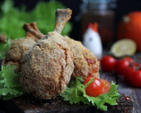 .; картофельное пюре - 300 г; сыр твёрдых сортов - 150 г; соль, паприка - по вкусу; панировочные сухари - 100 г; мука - 100 г; яйцо - 2 шт.; растительное масло для обжаривания ножек. Подготовить продукты. ... Затем окунуть каждую котлету на кости со всех сторон во взбитые яйца. Затем окунуть каждую котлету на кости со всех сторон во взбитые яйца.