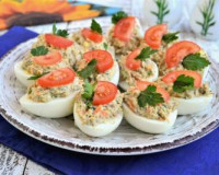На праздничном столе очень красиво, оригинально и нарядно будут смотреться яйца, фаршированные семгой. Закуска готовится за считанные минуты, нужно только предварительно отварить яйца. Для приготовления яиц, фаршированных семгой, вам потребуется: 5 яиц, сваренных вкрутую; 100 - 120 г малосольной семги (или форели); небольшой пучок укропа; соль и перец молотый - по вкусу; майонез или сметана для…