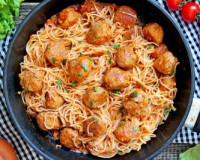 Для приготовления спагетти с фрикадельками в томатном соусе потребуется: мясной фарш любой (у меня - из свинины и говядины) - 400 г; яйцо - 1 шт.; чеснок - 1 зубчик; соль, специи - по вкусу; манка - 2 ст. л.; спагетти сухие - 200-250 г; растительное масло для жарки. ... В достаточно глубокой миске соединить фарш, очищенный и пропущенный через пресс чеснок, яйцо, соль и манку. В достаточно глубокой миске соединить фарш, очищенный и пропущенный через пресс чеснок, яйцо, соль и манку.