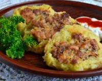.; мясной фарш - 200 г; лук - 1 шт.; яйцо - 1 шт.; соль, чёрный молотый перец - по вкусу; растительное масло для жарки. ... В миску с картофельной массой, отжатой от лишней жидкости, добавить половину луковицы, натёртой на мелкой тёрке. Сюда же добавить сырое яйцо, соль и чёрный молотый перец. Сюда же добавить сырое яйцо, соль и чёрный молотый перец.