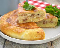 Аккуратно пергамент вместе с заготовкой пирога помещаем в чашу аэрогриля. В небольшой чашке сырое яйцо взбиваем силиконовой кисточкой до однородности. Сверху смазываем курник взбитым яйцом. ... Аккуратно пергамент вместе с заготовкой пирога помещаем в чашу аэрогриля. В небольшой чашке сырое яйцо взбиваем силиконовой кисточкой до однородности. Сверху смазываем курник взбитым яйцом.