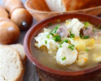 .; морковь (маленькая) - 1 шт.; лук репчатый - 1/2 шт.; яйцо - 1 шт.; вода - 2,3 литра (для варки бульона) + 70 мл (в тесто для клёцек); мука пшеничная - 100 г; соль - по вкусу. ... Сделайте клёцки, для этого в небольшой чашке взбейте вилкой яйцо с щепоткой соли. Сделайте клёцки, для этого в небольшой чашке взбейте вилкой яйцо с щепоткой соли.