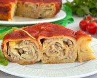 .; грибы любые (можно взять и шампиньоны, и лесные грибы) - 200 г; соль, специи молотые (у меня - чёрный молотый перец и паприка) - по вкусу; яйцо - 1 шт.; мука - 2 ч. л. Прежде всего приготовим начинку для слоёного пирога. ... По всей поверхности пирога вилкой делаем проколы (проколы нужны для того, чтобы тесто не вздувалось во время выпечки). Слегка взбиваем яйцо венчиком (или вилкой). Смазываем поверхности слоёного пирога яичной смесью.