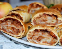 .; масло растительное - 4 ст. л.; яйцо для смазывания вертут перед выпечкой - 1 шт. Первым делом замесим тесто для вертут. ... Формировать вертуты нужно достаточно быстро, чтобы они не успели начать размокать (но и в спешке работать не нужно, важно, чтобы тесто было раскатано очень тонко). 4 сформированные вертуты, выложенные на застеленный противень, смазываем сверху взбитым яйцом. 4 сформированные вертуты, выложенные на застеленный противень, смазываем сверху взбитым яйцом.