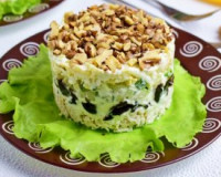 Верх салата обильно посыпьте обжаренными грецкими орехами. Слоёный салат с курицей, черносливом, свежим огурцом и грецкими орехами готов, немного его охладите в холодильнике и можно подавать. Салатик получается очень вкусным, сытным и красиво выглядит на любом столе. Слоёный салат с курицей, черносливом, свежим огурцом и грецкими орехами готов, немного его охладите в холодильнике и можно подавать.