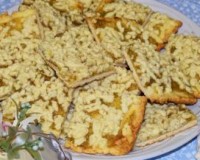 Для этого больший кусок теста раскатываем в пласт на пергаменте, выкладываем пергамент с тестом на противень. ... Сверху смазываем тесто вареньем. Сверху смазываем тесто вареньем. Далее, прямо на варенье, натираем на крупной терке наш меньший кусок теста.
