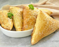 (или по вкусу); растительное масло для жарки; мука для раскатки теста. Размораживаем слоёноетесто (можно взять как дрожжевое, так и бездрожжевое слоёноетесто) при комнатной температуре. Поверхность стола присыпаем мукой, выкладываем размороженный пласт теста, разрезаем его на 6 одинаковых частей. Размораживаем слоёноетесто (можно взять как дрожжевое, так и бездрожжевое слоёноетесто) при комнатной температуре.