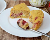 Добавить нарезанную клубнику в миску с творожной массой. Вмешать ягоды в тесто лопаткой. Всыпать разрыхлитель и примерно половину муки. Вмешать ягоды в тесто лопаткой. ... Так что, добавляя муку, ориентируйтесь на консистенцию замешиваемого теста для запеканки. Вмешать муку в тесто. Затем, частями добавляя оставшуюся муку, замесить творожное тесто, напоминающее по консистенции густую сметану.