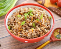 А в этот раз я предлагаю приготовить гречку с добавлением тушёнки в аэрогриле. Гречневая каша в процессе томления в аэрогриле получается хорошо пропаренной, нежной, ароматной и очень вкусной. ... Выставляем температуру аэрогриля 190 градусов, а время - 15 минут. После 7-8 минут с начала приготовления достаём чашу из аэрогриля, гречку перемешиваем и снова отправляем в аэрогриль.