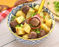 Для семейного обеда или ужина предлагаю запечь в аэрогриле фрикадельки с картошкой. Благодаря аэрогрилю, вы сможете без лишних усилий приготовить вкусное, сытное блюдо, включающее в себя и мясо, и гарнир к нему. ... Форму с картошкой ставим в чашу аэрогриля, отправляем в аэрогриль. Включаем аэрогриль, выставив температуру 180 градусов, а время - 40 минут.