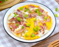 Форму с яйцами и беконом ставим в чашу аэрогриля. Отправляем чашу в аэрогриль. Включаем аэрогриль, выставив температуру 190 градусов, а время - 8-10 минут. ... Форму с яйцами и беконом ставим в чашу аэрогриля. Отправляем чашу в аэрогриль. Включаем аэрогриль, выставив температуру 190 градусов, а время - 8-10 минут.