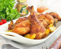 В аэрогриле можно приготовить много сытных и вкусных блюд для семейного обеда или ужина. ... Из чаши аэрогриля убрать решётку. Выложить в чашу аэрогриля дольки картошки с куриными ножками.