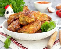 Чашу аэрогриля застелить пергаментом. Окунать крылья со всех сторон в кляр и сразу выкладывать в застеленную чашу аэрогриля. ... Готовые крылья переложить из чаши аэрогриля на тарелку. Аналогично запечь остальные куриные крылышки. Готовые крылья переложить из чаши аэрогриля на тарелку.