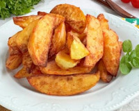 Выложить дольки картошки в чашу аэрогриля, желательно в один слой. Выложить дольки картошки в чашу аэрогриля, желательно в один слой. ... Переложить его из чащи аэрогриля на тарелку и в горячем виде подать к столу. Приятного аппетита!