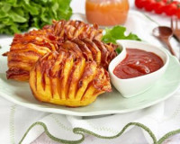 Выложить картошку-гармошку с беконом на решётку в чашу аэрогриля. Выложить картошку-гармошку с беконом на решётку в чашу аэрогриля. ... Время запекания зависит от сорта картофеля и мощности вашего аэрогриля (мощность моего аэрогриля 1350 Ватт). Поставить чашу с картофелем в аэрогриль.